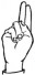 На ћирилици написано РАДНА ЈЕВЧИЋ састоји се из 11 слова [?]. Исписано ћириличном једноручном азбуком за глувонеме: